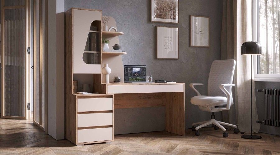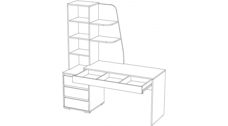 Три ящика в тумбе + Один широкий ящик под столешницей.