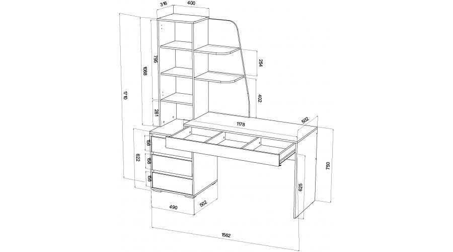 Габаритные размеры Ш*Г*В: 1562*502*1710мм.